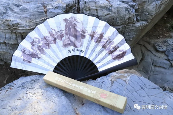设计师选取“十二兽首”IP元素,采用素描写生方式设计出此扇。扇面正面为十二兽首铜像,背面选用兽首所在地海晏堂,扇子寓意四海升平,万事吉祥。十二兽首铜像折扇做工精良,自留、赠礼皆适宜。