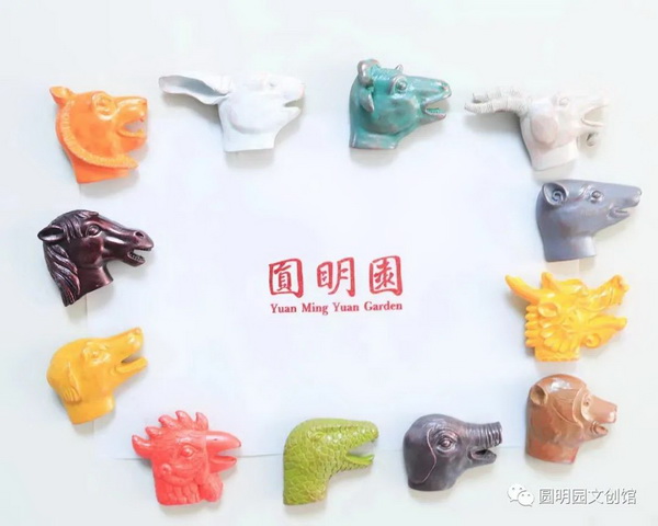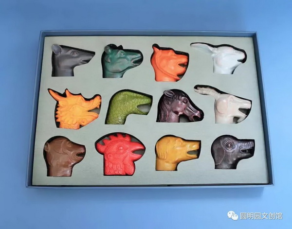 每款冰箱贴都以圆明园海晏堂十二生肖兽首铜像为原型,材质正面为树脂,背面为圆磁,工艺采用3D建模、手工塑型精雕,分层微刻着色,成型后再做精抛打磨、手工扫金着色处理。