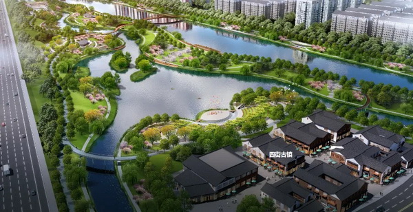 河道提升与公园建设紧紧围绕着朱房商务区与四街古镇的需求,强化针对文旅商业发展的生态环境基础与休闲服务设施。为周边居民和游客提供优质的滨水活力空间,同时也可进一步带动文旅商业发展。