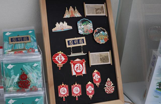 步入三山五园文化艺术中心“海淀有礼”文创店,传统文化与现代艺术交融的气息扑面而来,东方韵味与现代美学融为一体。融入三山五园和海淀文化等元素的徽章、香薰、花瓶、冰箱贴、宫廷御扇等文创产品琳琅满目,让人目不暇接。