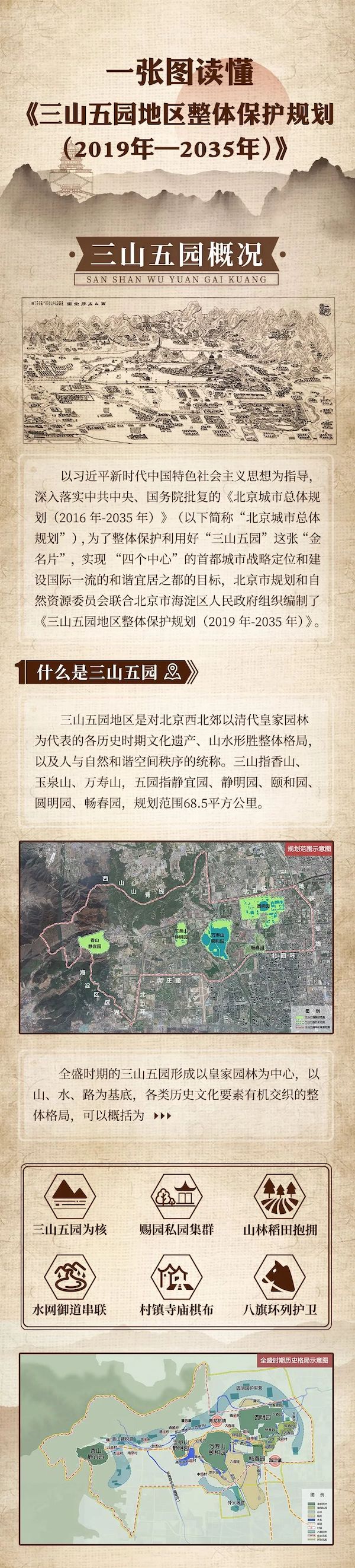 为系统保护三山五园优秀的传统历史文化,市规自委联合海淀区政府组织编制了《三山五园地区整体保护规划(2019年-2035年)》(以下简称“规划”)。作为传统历史文化与新兴文化交融的复合型地区,拥有以世界遗产颐和园为代表的古典皇家园林群,集聚一流的高等学校智力资源,具有优秀历史文化资源、优质人文底蕴和优美生态环境,集中了“四个中心”的首都功能的三山五园地区,将划定六个保护重点。该规划草案已于昨日在市规自委官网履行公示程序、征求公众意见。