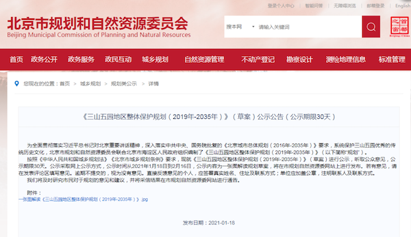 目前,北京市规自委于1月18日依法在官网上就该规划草案履行公示程序、征求公众意见。