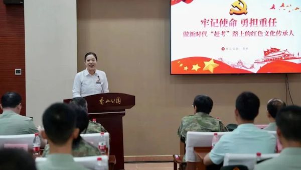 孙齐炜书记介绍了香山革命纪念地旧址开展爱国主义教育的有关情况,她表示香山革命纪念地旧址是开展党史、国史、军史教育的重要场所,部队士兵前来参观学习的热情高涨。香山公园以双清别墅为龙头搭建思政课教学平台,成为弘扬“赶考”精神的重要实践教育课堂。此次合作协议的签订对于激励新时代青年传承红色基因,弘扬“赶考”精神具有十分重要的意义。