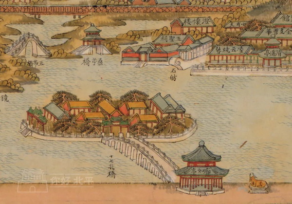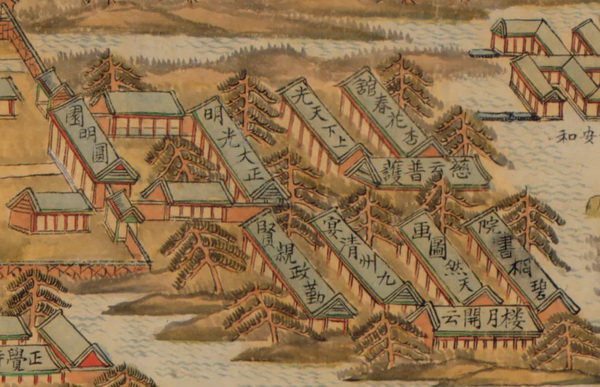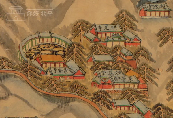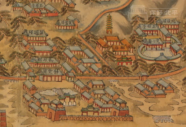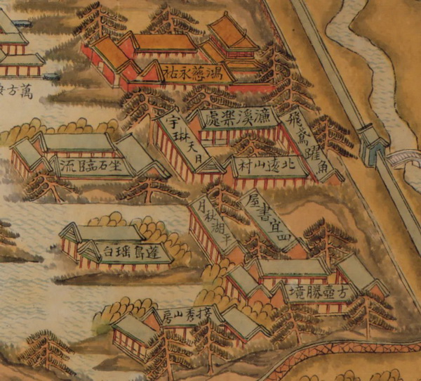 目前还有“三山五园”组成的其它版本,但从这幅图的名称及画面来看,所谓“三山五园”在清代就已经有了明确的含义和指向。