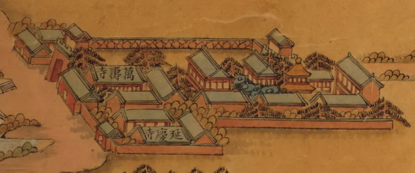 除了以上“三山五园”,“全图”中还有绘有多处寺庙、景观、建筑、村落,举例如下: